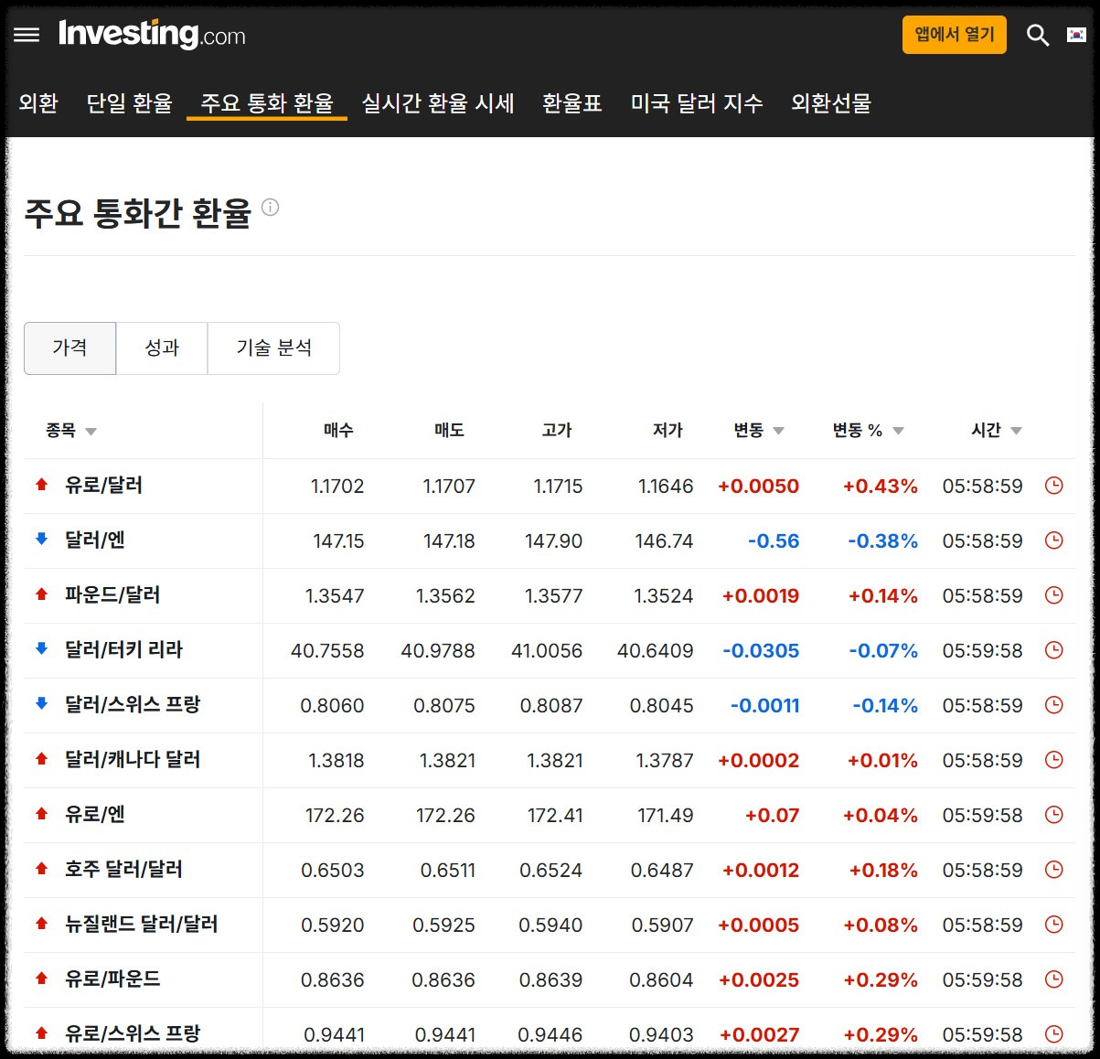아래의 '인베스팅 홈페이지'를 통해서 확인하는 것을 추천드립니다.